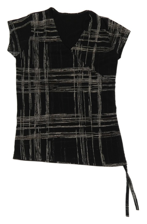 Čierno-sivé kockované crop tričko s nařasením