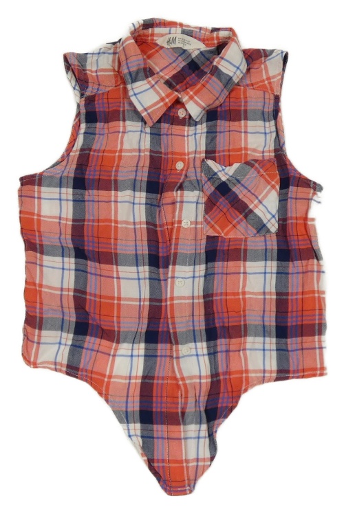 Bielo-modro-červený kockovaný blúzková ý crop top H&M