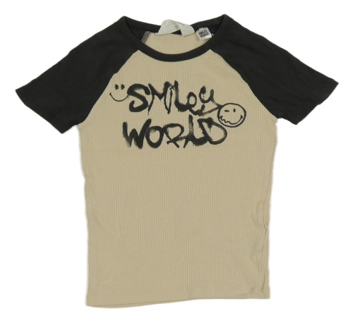 Béžovo-antracitové rebrované crop tričko s nápisom H&M