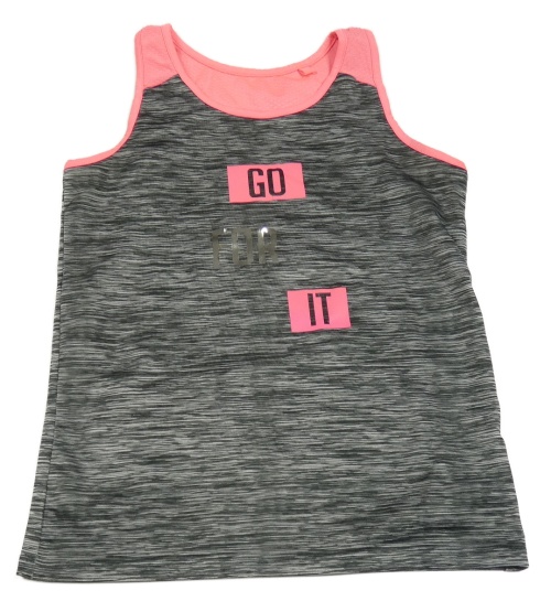 Tmavosivý melírovaný športový top s růžovým lemem a nápisom C&A