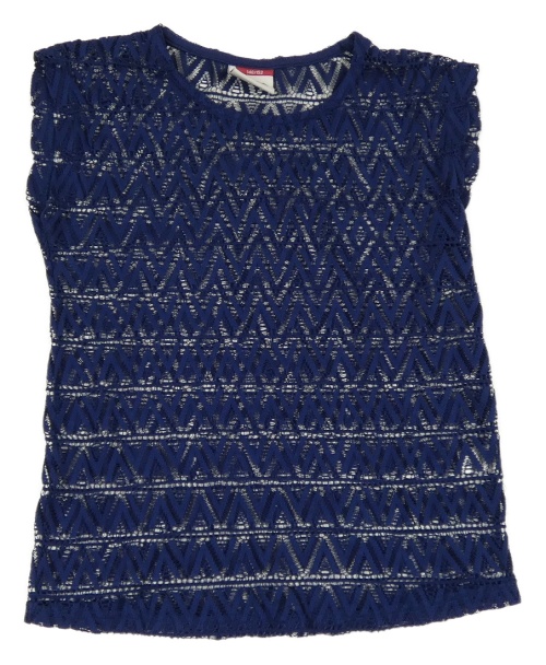 Tmavomodré vzorované čipkové průsvitné tričko YIGGA