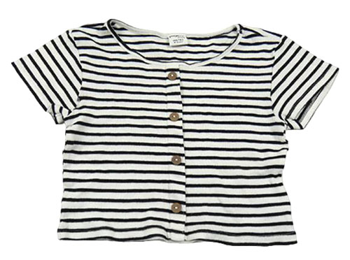 Bielo-čierne pruhované rebrované crop tričko s gombíkmi Page One Young