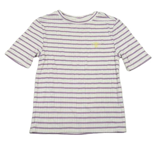 Bielo-levandulové pruhované rebrované crop tričko s výšivkou
