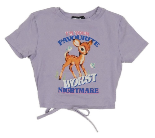 Fialové crop tričko so srncem a nápismi Tally Weijl