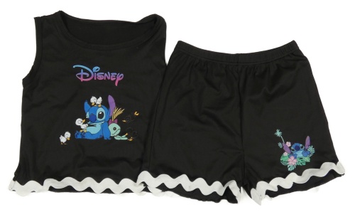 2set - Čierny rebrovaný crop top s bielým lemem + kraťasy so Stitchem