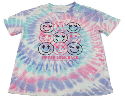 Bielo-ružovo-fialovo-azurové batikované tričko so smajlíkmi SHEIN