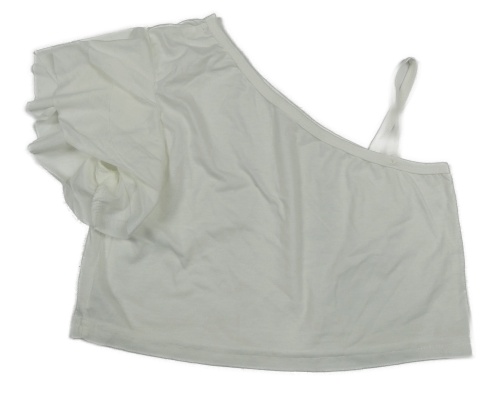 Biele crop tričko s volánikom a odhaleným ramenem