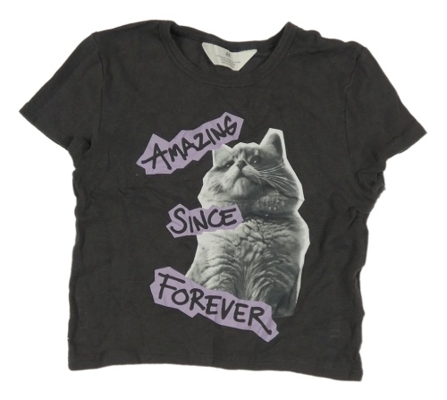 Tmavosivé crop tričko s mačkou H&M