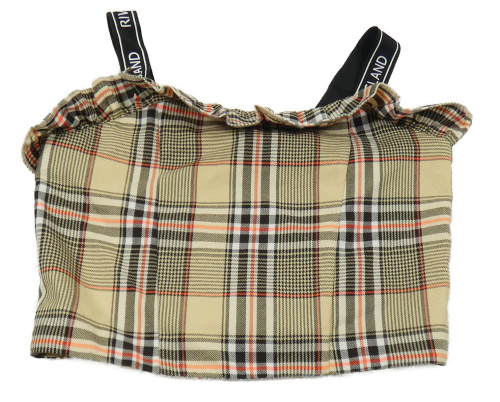Béžovo-čierno-biely kockovaný crop top s volánem River Island