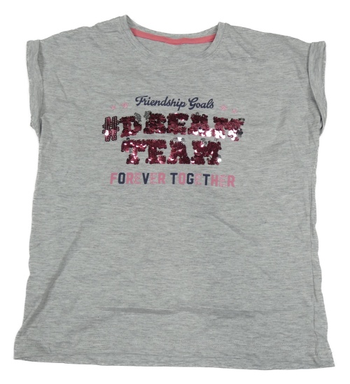 Sivé melírované tričko s nápisom a flitrami