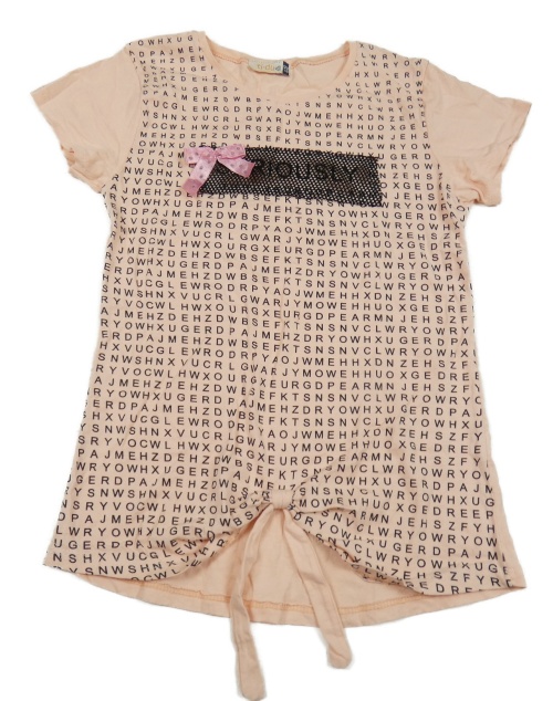 Svetloružové tričko s písmeny a síťkou a mašlou
