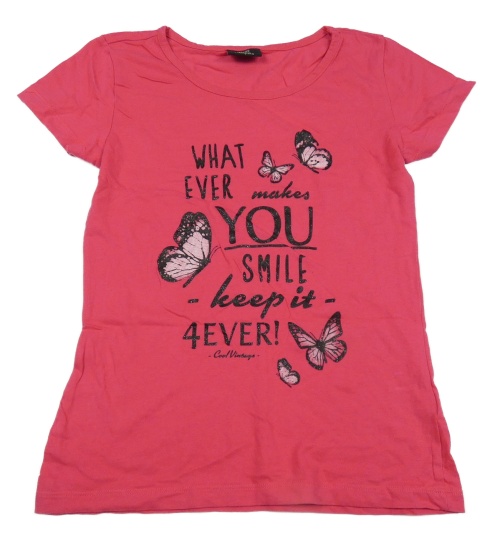 Tmavoružové tričko s nápismi a motýlikmi Page Young