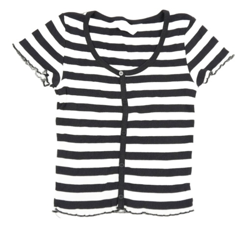 Bielo-antracitové pruhované rebrované crop tričko H&M