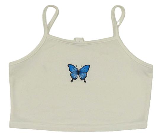 Smotanový crop top s motýlom Shein