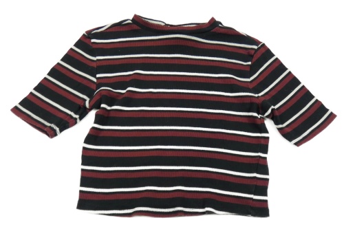 Čierno-vínovo-biele pruhované rebrované crop tričko New Look