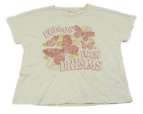Smotanové tričko s nápismi a motýlikmi Nutmeg