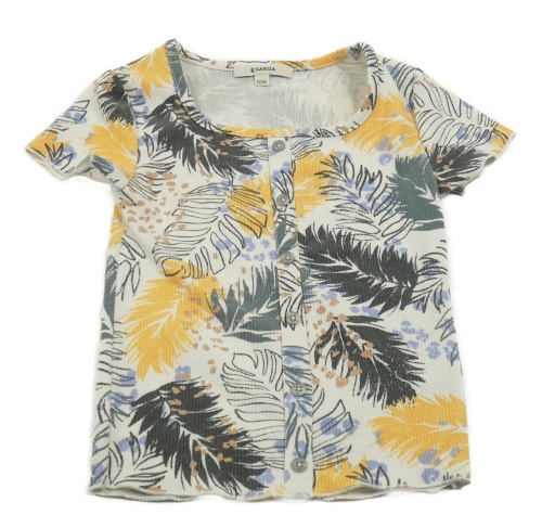 Bielo-žlto-čierno-zelené rebrované crop tričko s listami Garcia