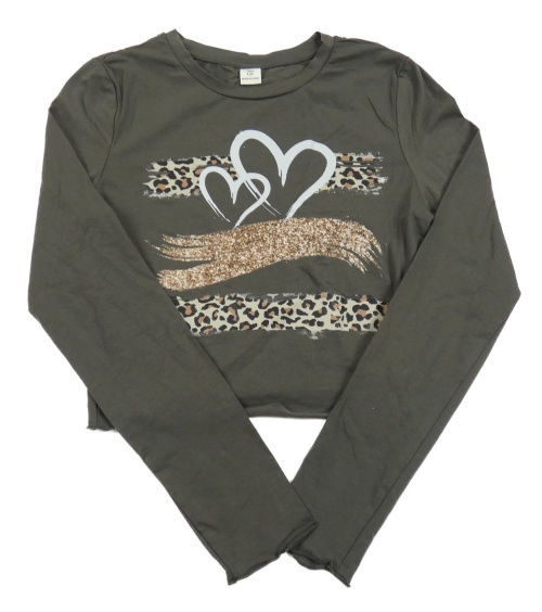Antracitové crop tričko s pruhmi a srdcem Shein