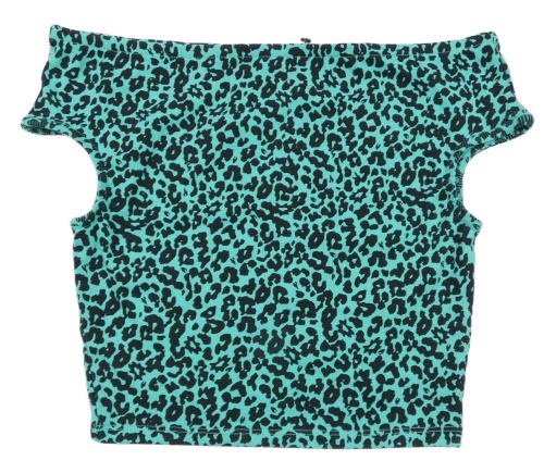 Tyrkysovo-čierne rebrované crop tričko s leopardím vzorom Matalan