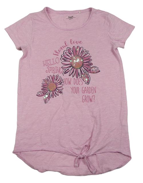 Ružové melírované tričko s nápisy a kvety s flitrami a uzlom YIGGA