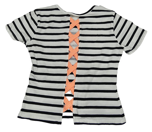 Bielo-čierne pruhované crop tričko s nápisem z flitrů Page One Young