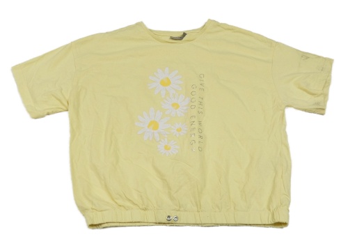 Žlté crop tričko s kvietkami a nápisom