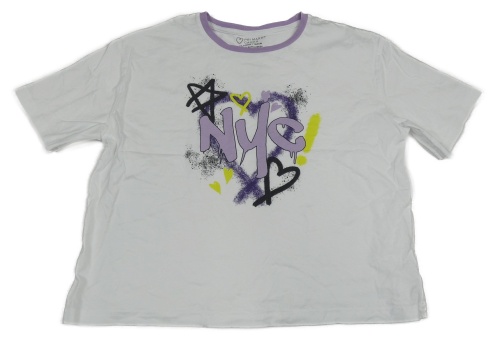 Bielo-fialové crop tričko s písmenky a srdiečkami PRIMARK