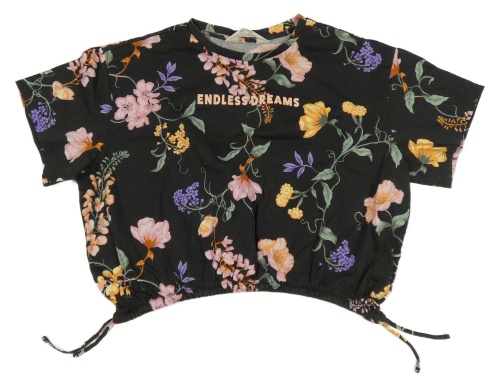 Čierne kvetované crop tričko s nápisom H&M