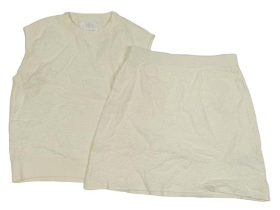 2set - Smotanový kvetovaný pletený crop top + pletená sukňa Zara