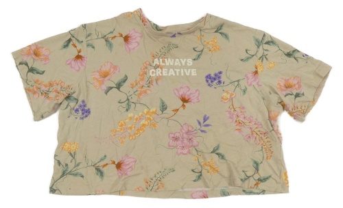 Béžové crop tričko s kvietkami a nápismi H&M