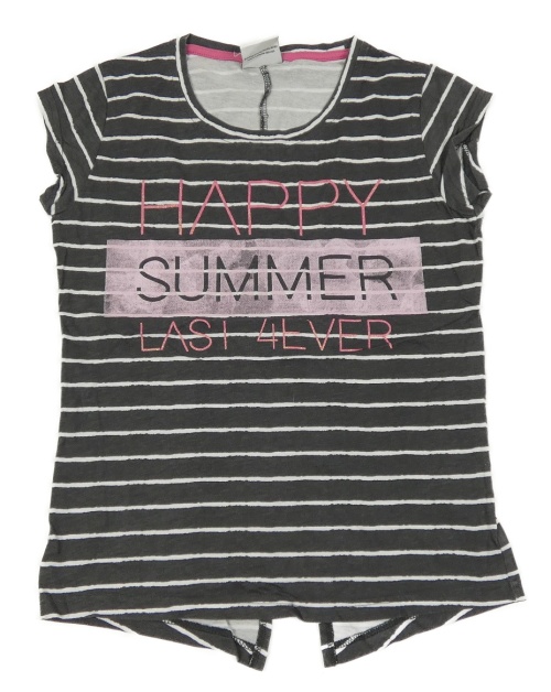 Tmavošedo-biele pruhované tričko s nápisom Yigga