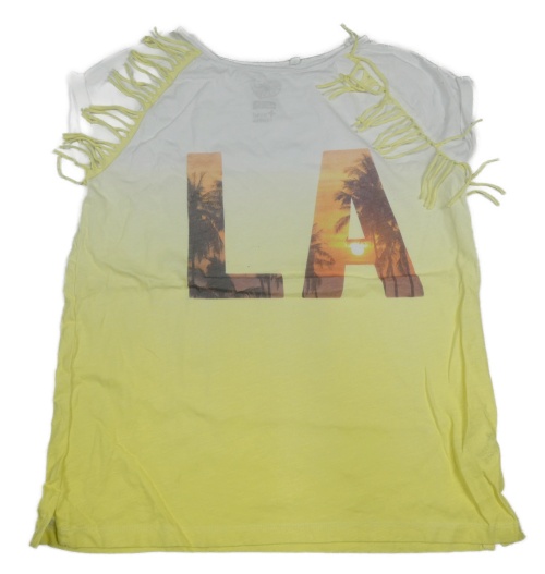 Bielo-žlté tričko s písmeny a strapcemi C&A