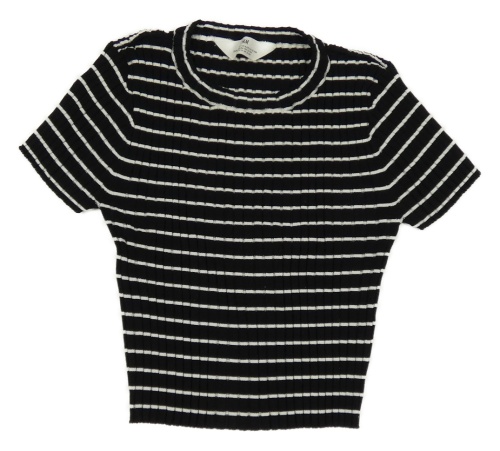Čierno-biele pruhované rebrované pletené crop tričko H&M