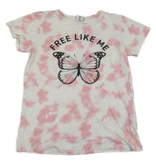 Bielo-ružové batikované tričko s motýlkom a nápisom Page one young