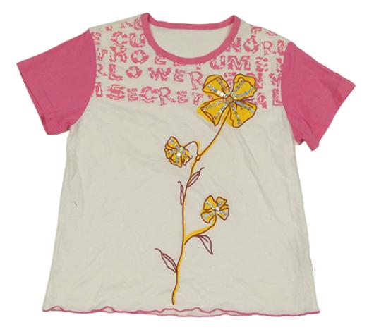 Bielo-ružové tričko s kvetinou s flitrami