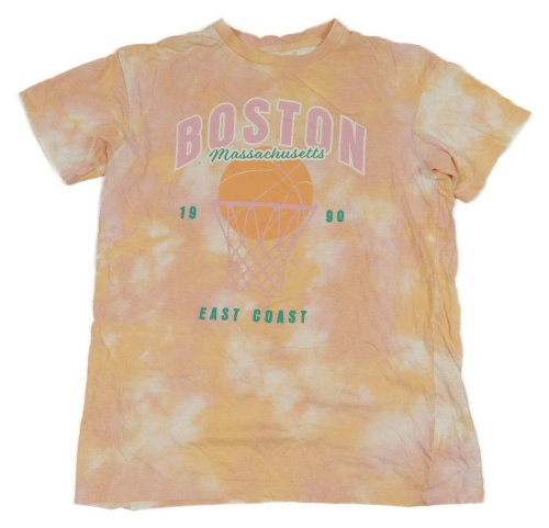 Oranžovo-broskvovo-biele batikované tričko s loptou H&M
