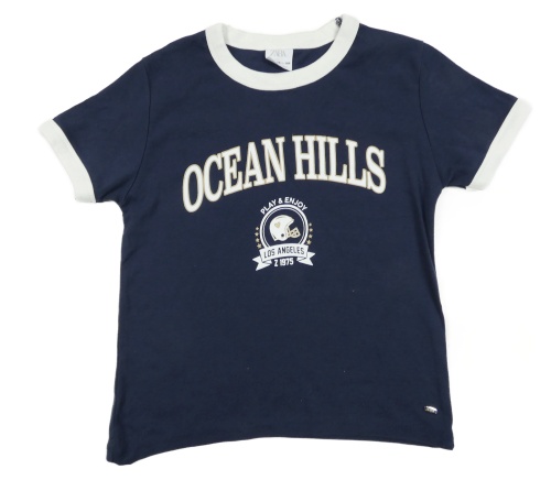 Tmavomodro-biele crop tričko s nápisom a helmou ZARA