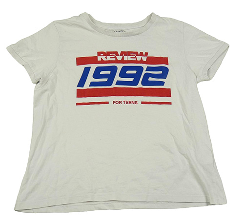 Biele crop tričko s nápisom a číslom Review
