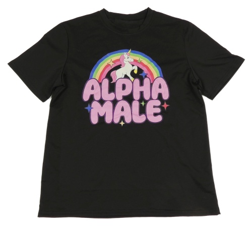 Čierne tričko s jednorožcom a dúhou a nápismi