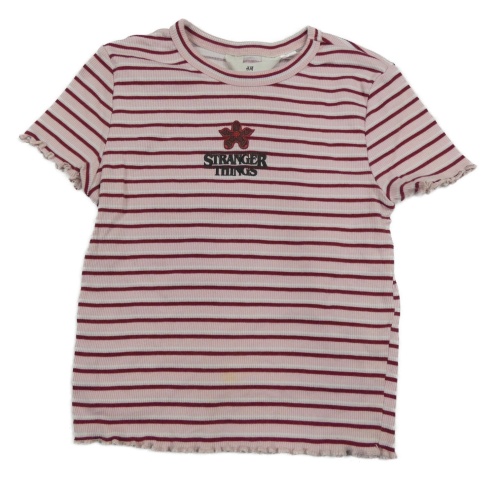 Svetloružová -vínové pruhované rebrované crop tričko s logem - Stranger Things H&M