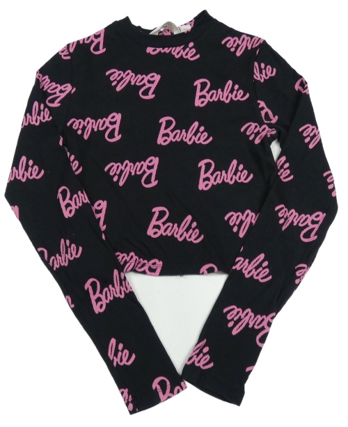 Čierne crop rebrované tričko s nápisy - Barbie H&M