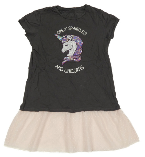 Tmavošedo-ružová tunika s jednorožcem z flitrů a tylovým volánikom C&A