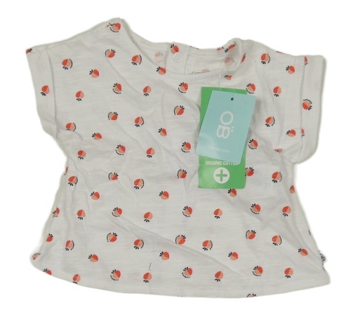 Nové - biele melírované tričko s jahůdkami OBaïBi