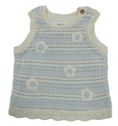 Bielo-modrá pruhovaná pletená podšitá vesta s kvietkami F&F