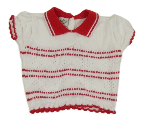 Bielo-červené pruhované svetrové tričko s golierikom