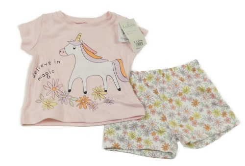 Nové - 2set - Svetloružové tričko s jednorožcem + biele kvetované bavlnené kraťasy Peacocks