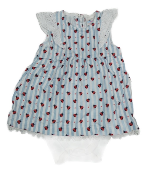 Světlemodro-biela pruhovaná tunika s lienkami a všitým body Topomini