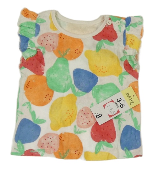 Nové - biele rebrované tričko s ovociem a jahůdkami a volánikmi Matalan
