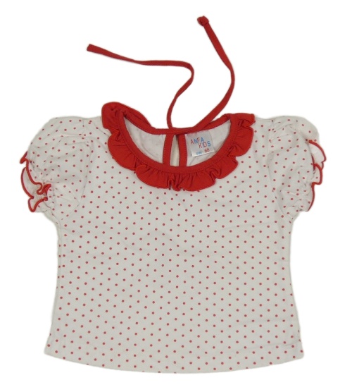 Bielo-červené bodkovaná é tričko s volánikmi Anfa Kids
