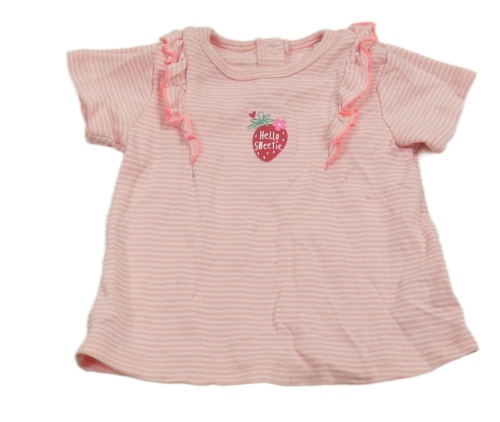 Ružové pruhované tričko s volánikmi a jahodou